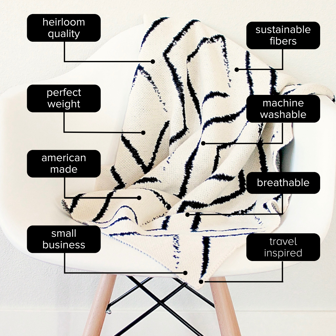 This modern, and slightly edgy, knit throw makes the perfect gift for anyone, for any room, any day, anywhere.