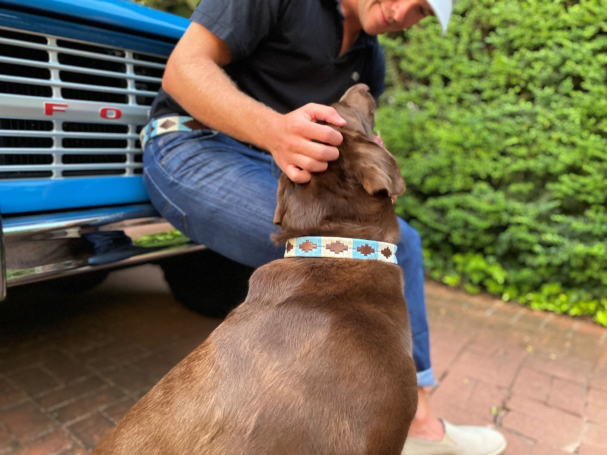 World-class dark brown Argentine leather with powder blue & white nylon thread, artfully hand-stitched in Buenos Aires.