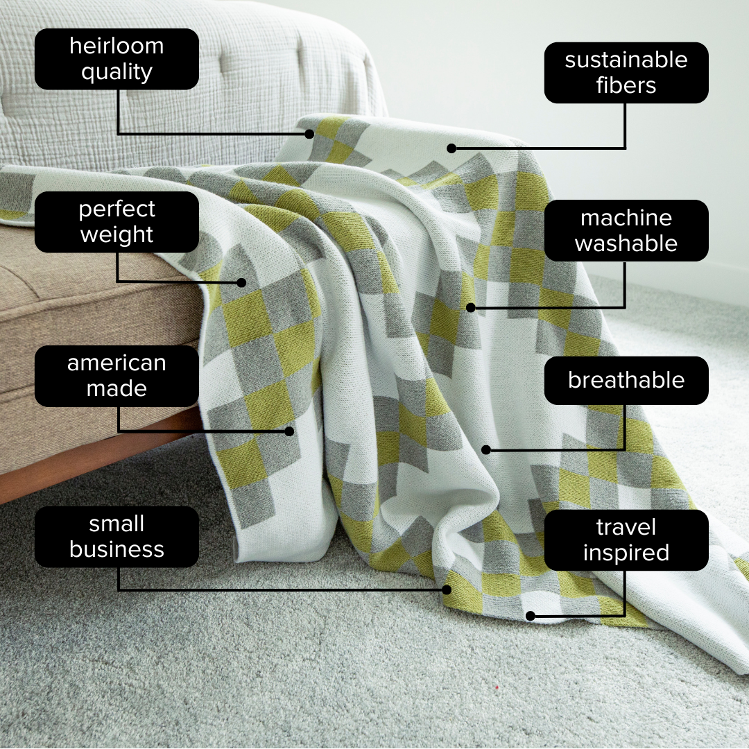The Baile Throw celebrates the Irish Gaelic word for "home," embodying a sense of comfort and belonging. Its timeless Irish Chain pattern seamlessly complements modern, traditional, and eclectic interiors. Whether draped over your favorite chair or used to stay cozy on chilly evenings, this thoughtfully crafted blanket invites you to relax in style and embrace the warmth of home.