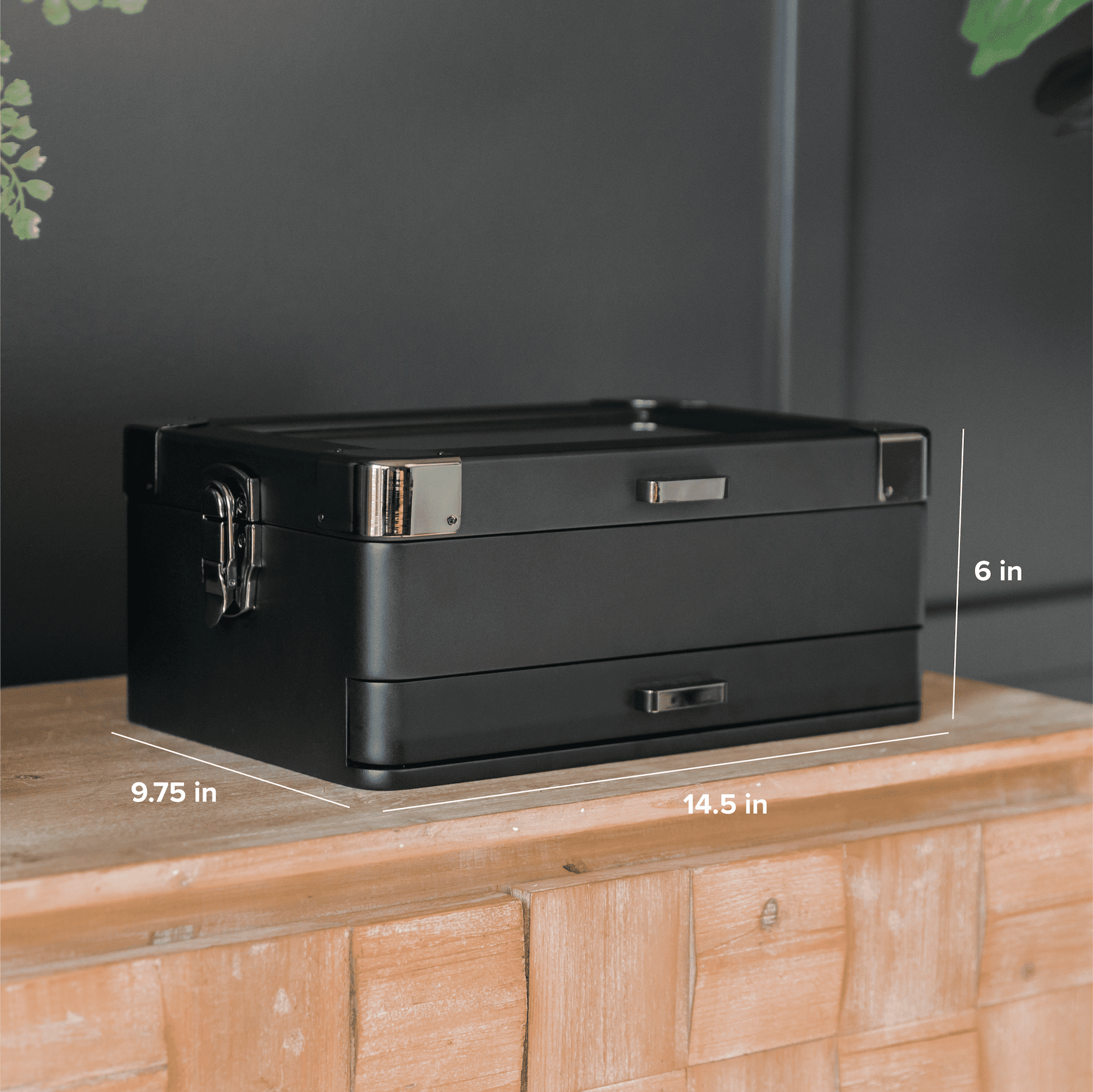 MILITARY INSPIRED - Inspired by military footlockers, each detail of this durable watch box has been designed to create a protective yet elegant storage space for your valuable watches and accessories. All hardware is plated in polished gunmetal to complete the military presentation. This watch box is an absolute tank.