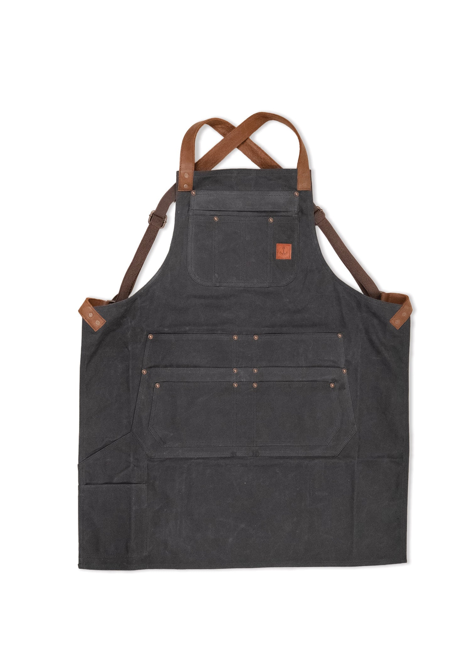 Nothing beats a solid shop apron, especially one that keeps that white tee looking white. Between the heavy duty 14.75oz waxed cotton canvas, leather crossover shoulder straps, copper rivets, and intentionally designed pockets you'll be wondering how you managed life before. Whether you're filling it with tools to get the job done, or perhaps your favorite beer to take the edge off after a long day of attempting to get that damn bike to kick over again, this apron can handle whatever you throw at it.