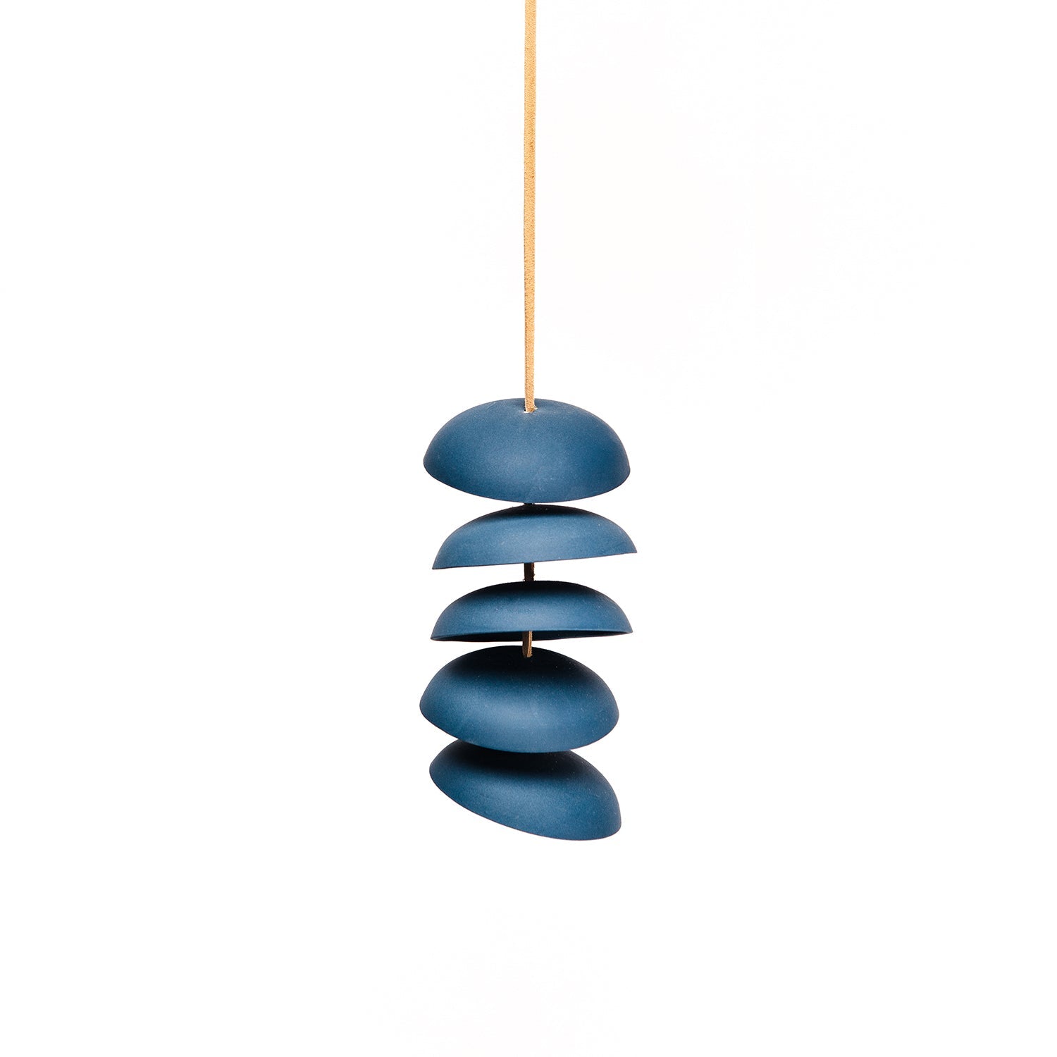 A modern take on the classic wind chime. Tinted ceramic discs are strung together on a natural deerskin lace cord to make a modern outdoor statement that gently clink together in the breeze. Sold in three sizes and eight colorways. Please note these only come in solid colors, we cannot mix colorways.
