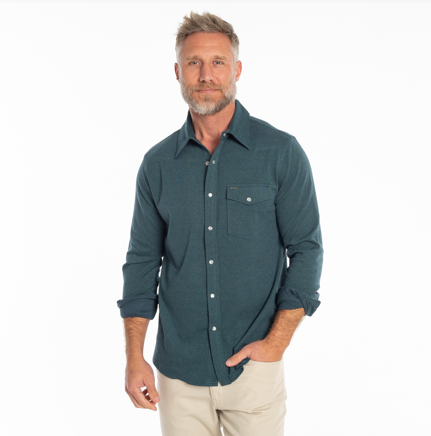 Another fine addition to the Pearl Snap Collection. Effortless, laidback style with the perfect amount of stretch to maximize comfort in every stitch. This thing might actually be the most comfortable pearl snap we have. It’s seriously like wearing a blanket straight out of the dryer, but much more practical… and stylish.