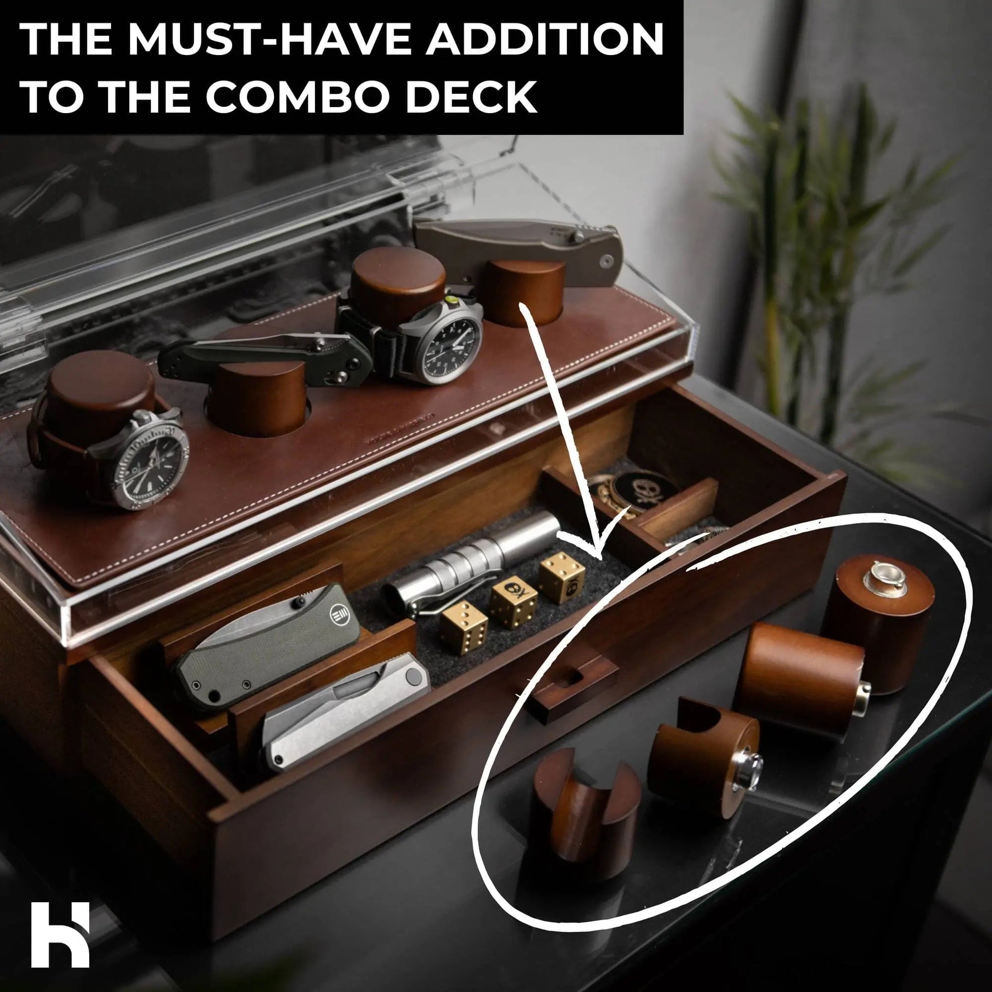 Whether you are an EDC enthusiast or a collector, the Holme & Hadfield Combo Deck Extra 4 Pillars offer you the opportunity to take your display to the next level. Elevate your presentation, protect your valuable items, and add a touch of personalization to your watch and knife collection.