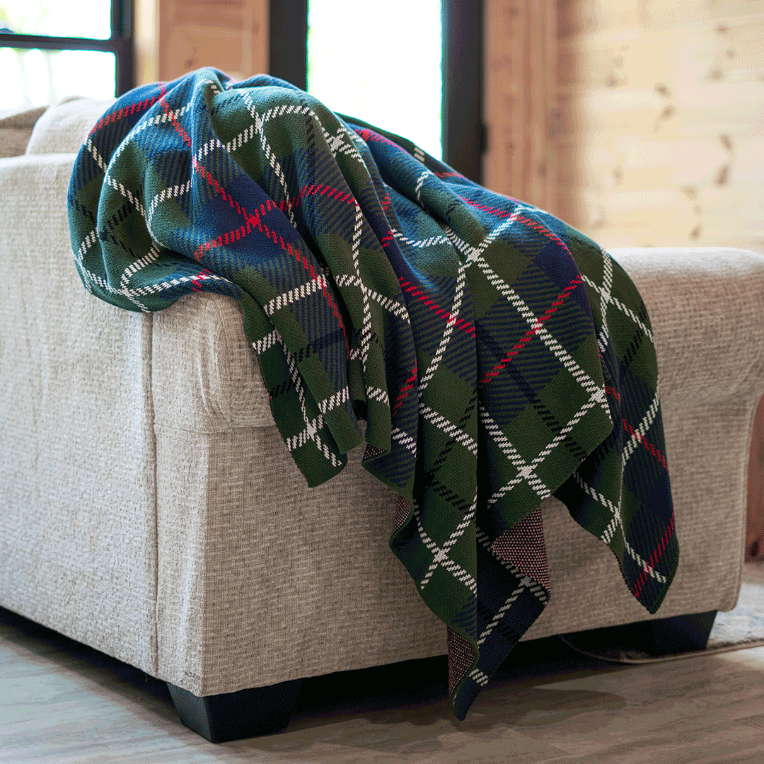 The Duncan Throw is a nod to Scotland's rugged beauty and the storied heritage of the Duncan clan tartan. Featuring deep greens, blues, reds, and whites, this striking plaid evokes the majestic landscapes and rich traditions of the Scottish Highlands. Each color tells a story—blue symbolizes loyalty, green represents the land, and red stands for courage—bringing a timeless piece of Scottish history into your home with modern elegance.