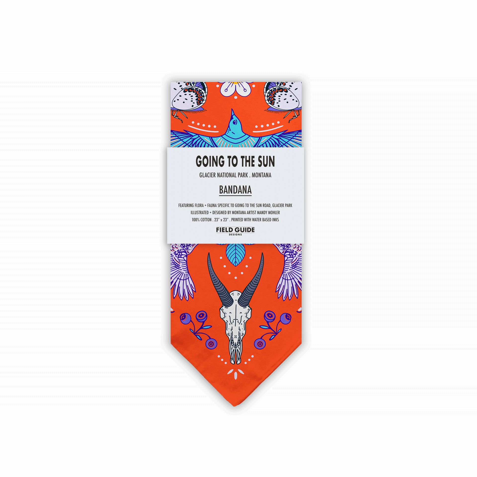 This bandana serves as your keepsake and field guide for the renowned natural wonder of Glacier National Park.