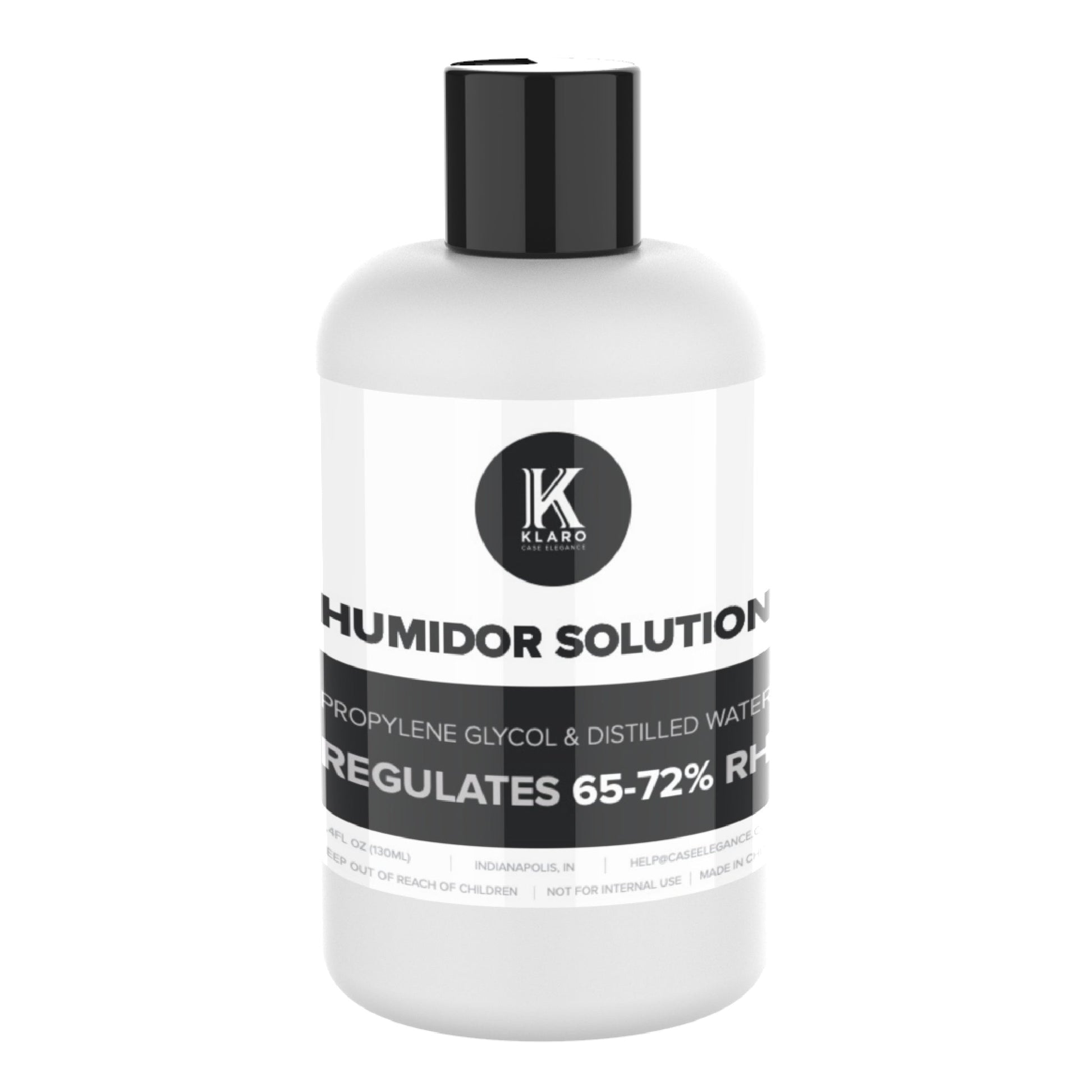 REGULATES HUMIDOR HUMIDITY BETWEEN 65-72% - The propylene glycol and distilled water mix helps regulate your humidor to your desired humidity level. It's simple, just add more solution to increase the humidity.