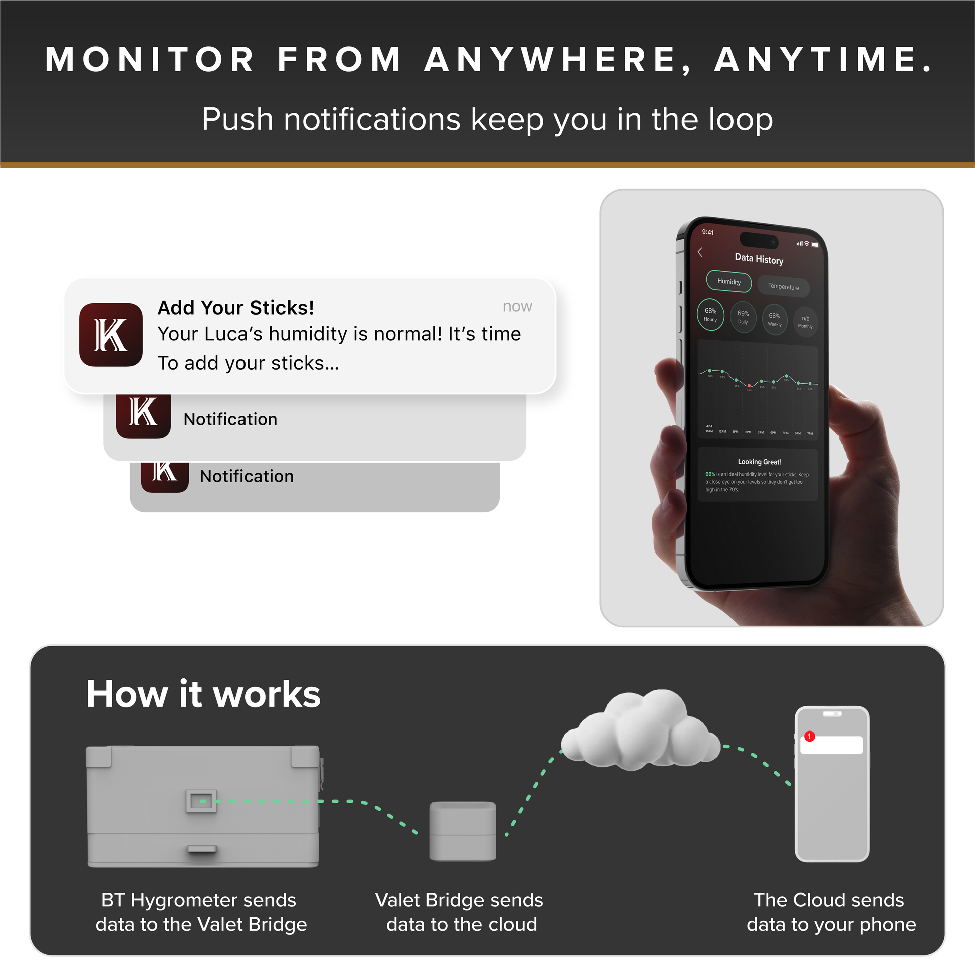 New to this edition, every Black Military Humidor now comes with the Klaro Valet BLE Bridge, giving you real-time humidity and temperature tracking directly from your phone, plus the ability to catalog and organize your cigar collection like never before.
