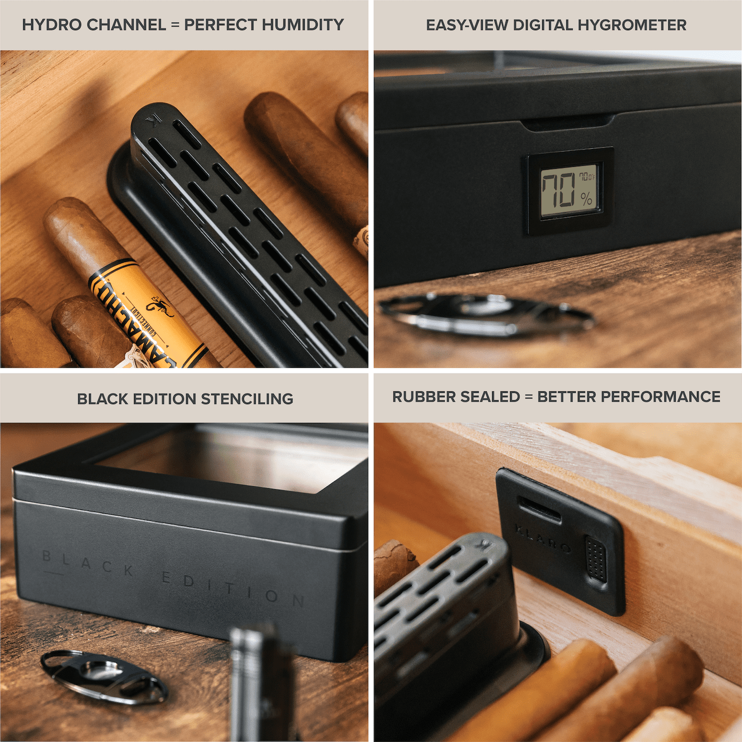 - Includes full Hydro System ™ (Hydro Tray™ and two bottles of Klaro Humidor Solution)