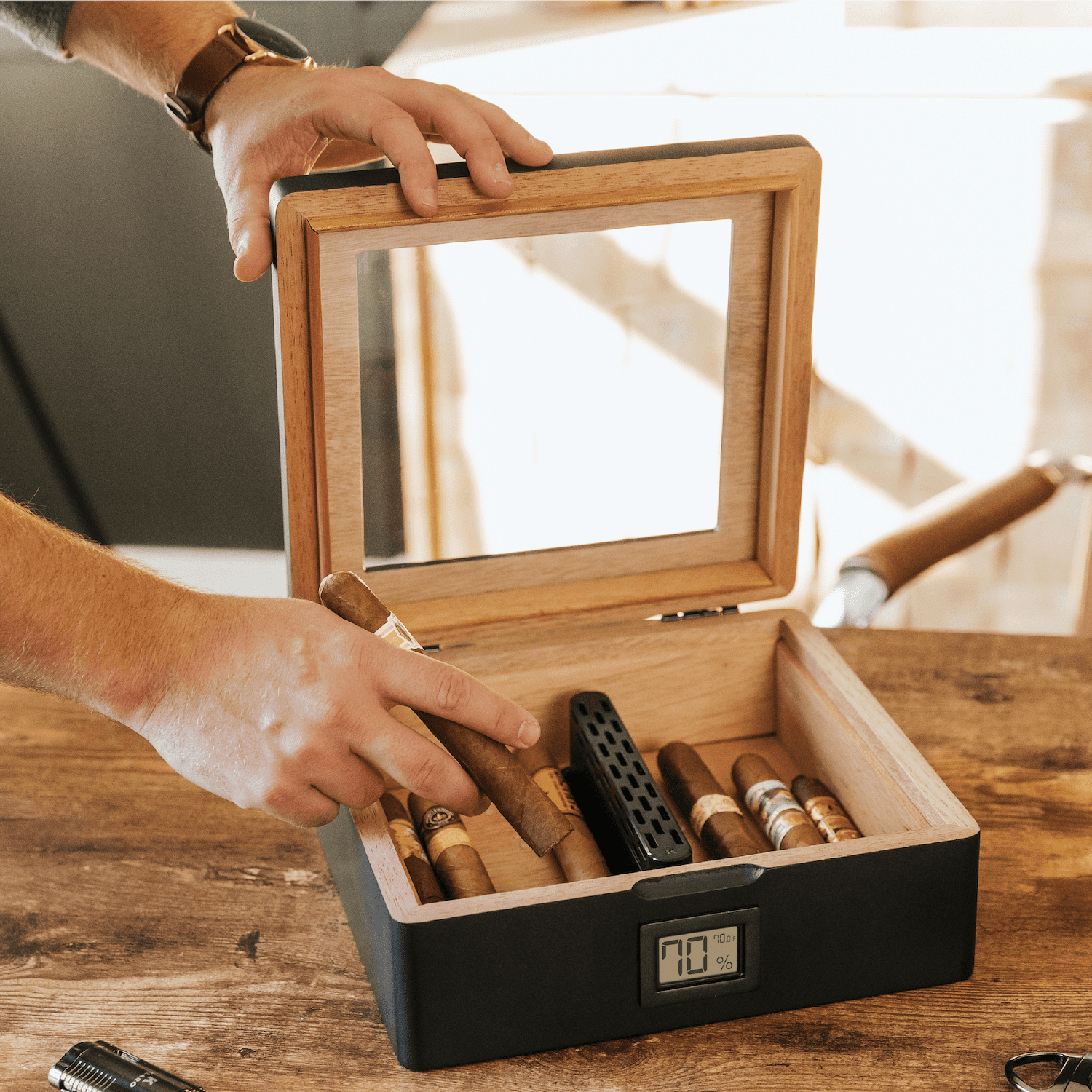 DIGITAL ACCURACY – We make accuracy the chief priority of your humidor. From a magnetic lid that ensures no humidity leakage to our gasket-sealed digital hygrometer, we take every step in the design process to eliminate humidity fluctuation inside your humidor. Have a piece of mind knowing your cigars are covered.