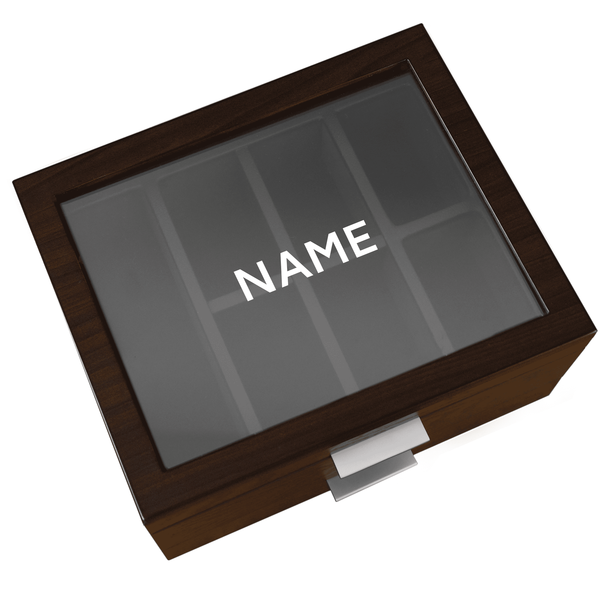 Proudly display your watches with the Mill Watch Box by Case Elegance, a handsome glass-top display case perfect for your collection of watches and accessories. This walnut finish wood box features removable interior walls for unique modular storage. The Mill can hold 8 large-face watches or convert into a 2-slot setup by simply removing the middle walls to accommodate sunglasses and other accessories like your apple watch or phone. The interior is lined with resilient scratch-proof, soft black velvet for ultimate protection and durable vegan leather dividers to keep your watches safe and secure. Show your watches off properly on individual cushioned pillows atop our custom-designed pillow stands that ensure your watches are perfectly aligned. We’ve included a pull-out accessory drawer ideal for storing extra watch bands, accessories, and tools. With the ability to customize your setup with smartwatch charging and sunglass storage, this watch box is the ideal all-in-one setup for your watch collection.