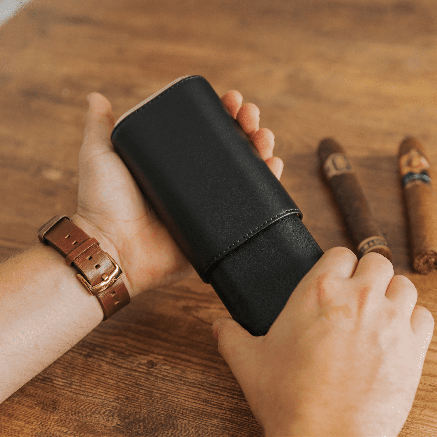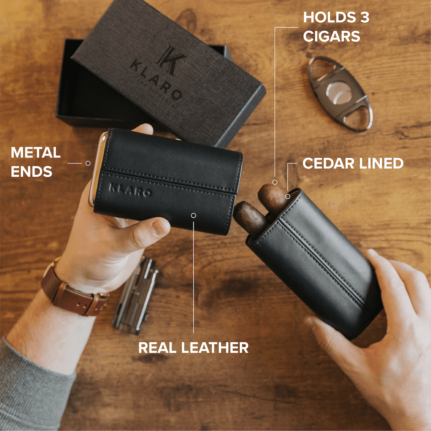 MADE WITH REAL LEATHER - There’s no better way to travel with cigars than with this classy, compact leather case for 3 cigars. Featuring genuine Black leather, you can smell out of the box; this case is built to last with quality stitching and top-notch construction. Protect your cigars for years to come.