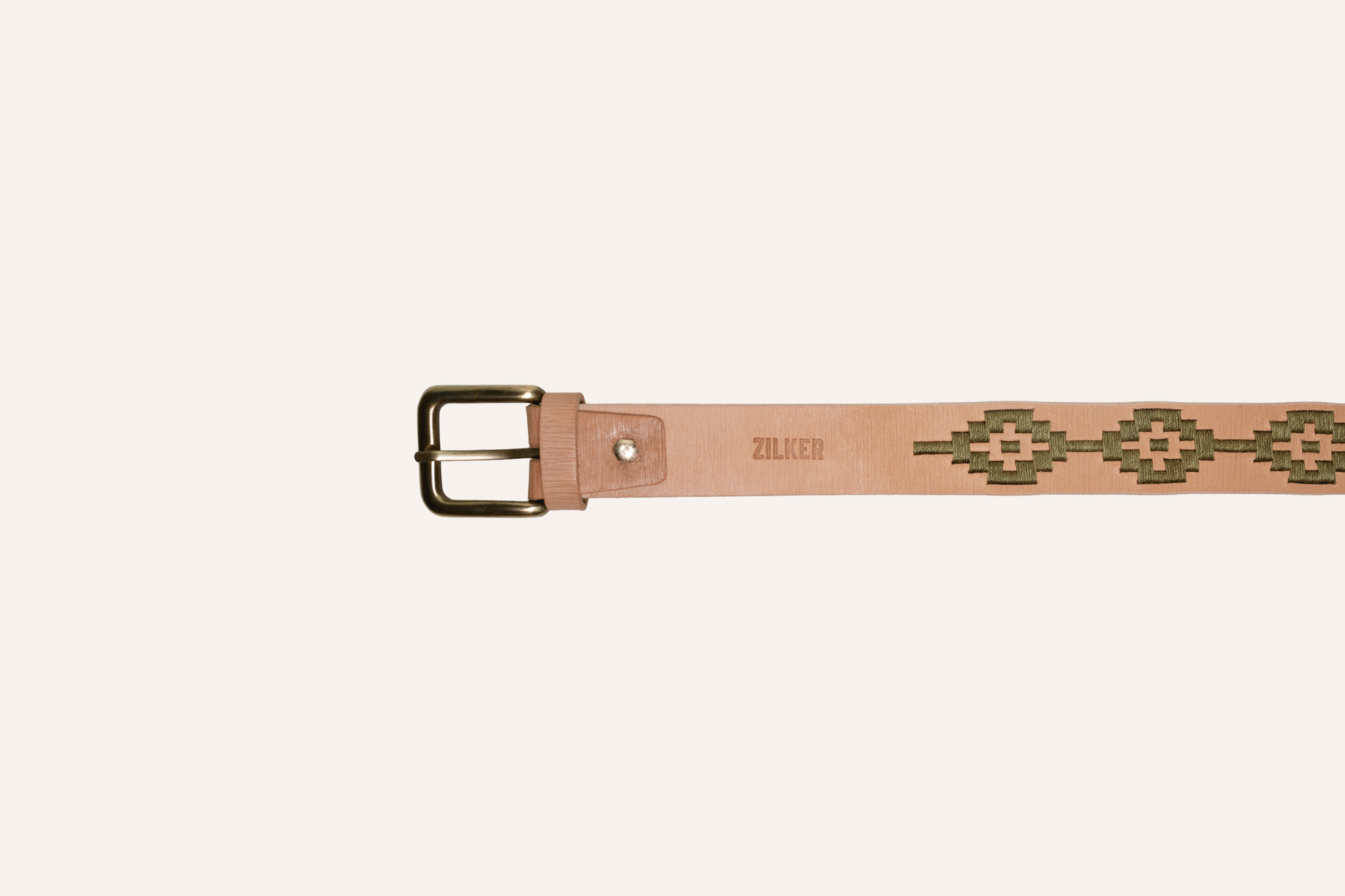 Made with world-class raw Argentine leather with sage green nylon thread, artfully hand-stitched in Buenos Aires, and featuring a removable antique brass buckle.
