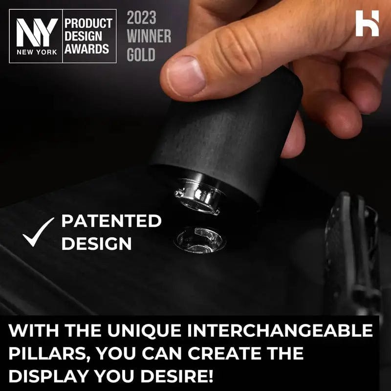 For a customizable display knife and watch organizer, upgrade to 4 extra interchangeable posts, including 2 watch posts and 2 knife posts.