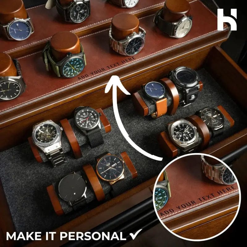 Whether it's in your home office, living room, or studio, this mens watch case is a work of art that mirrors your unique style.