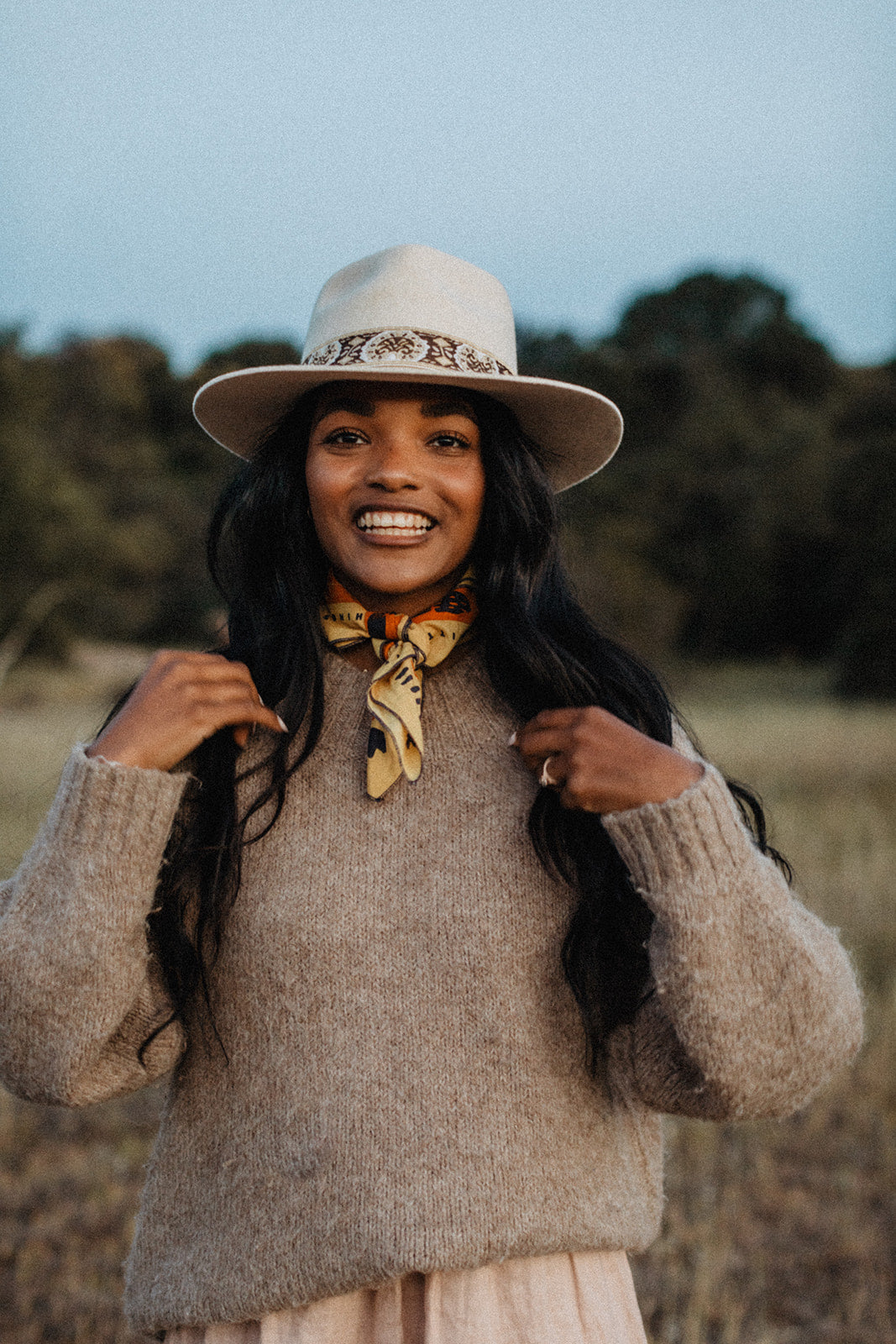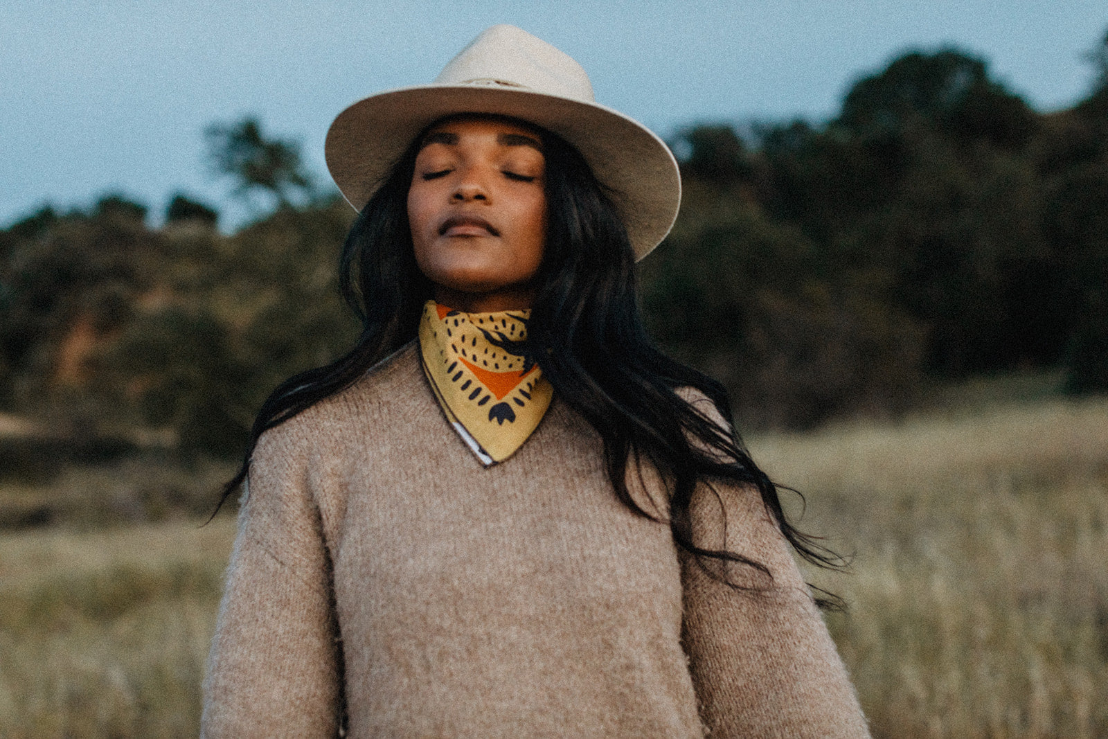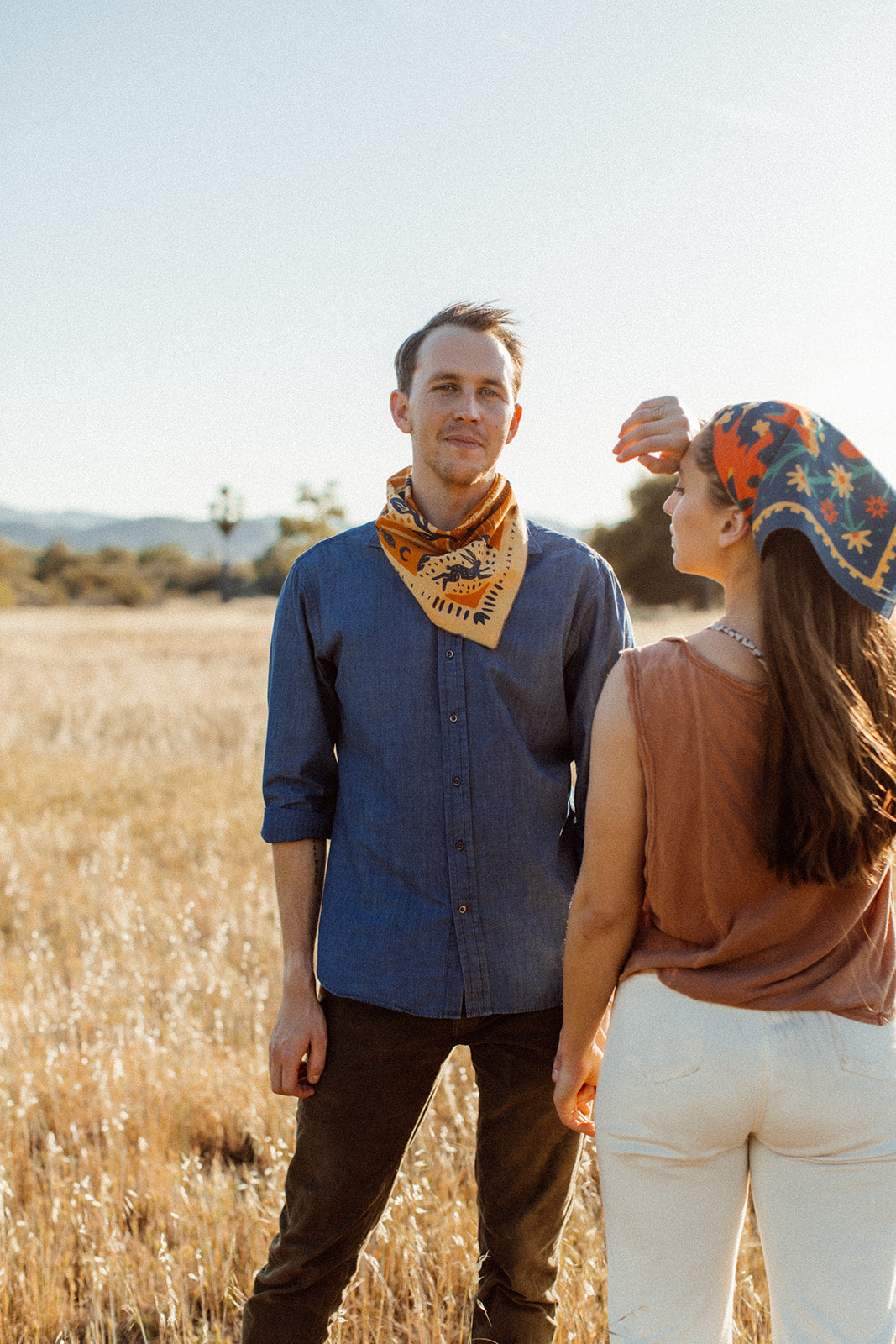 As Rachel explained, "So often we miss out on the little things around us everyday, whether that be the little creatures, flowers, or a friendly hello from a neighbor, so with this piece, I really wanted to focus on the little things that make a big impact." Like much of Rachel's work, this bandana design embodies Rachel's positive outlook on the beautiful places, creatures, and plant-life she encounters on her adventures through the Southwest.