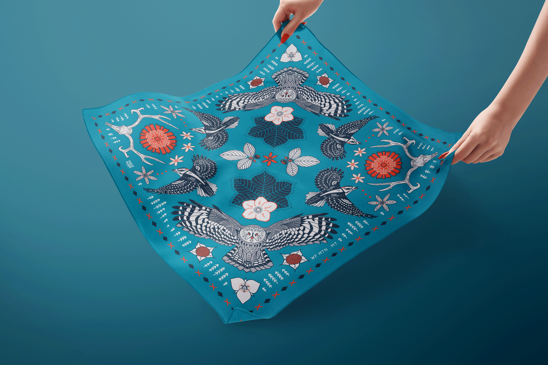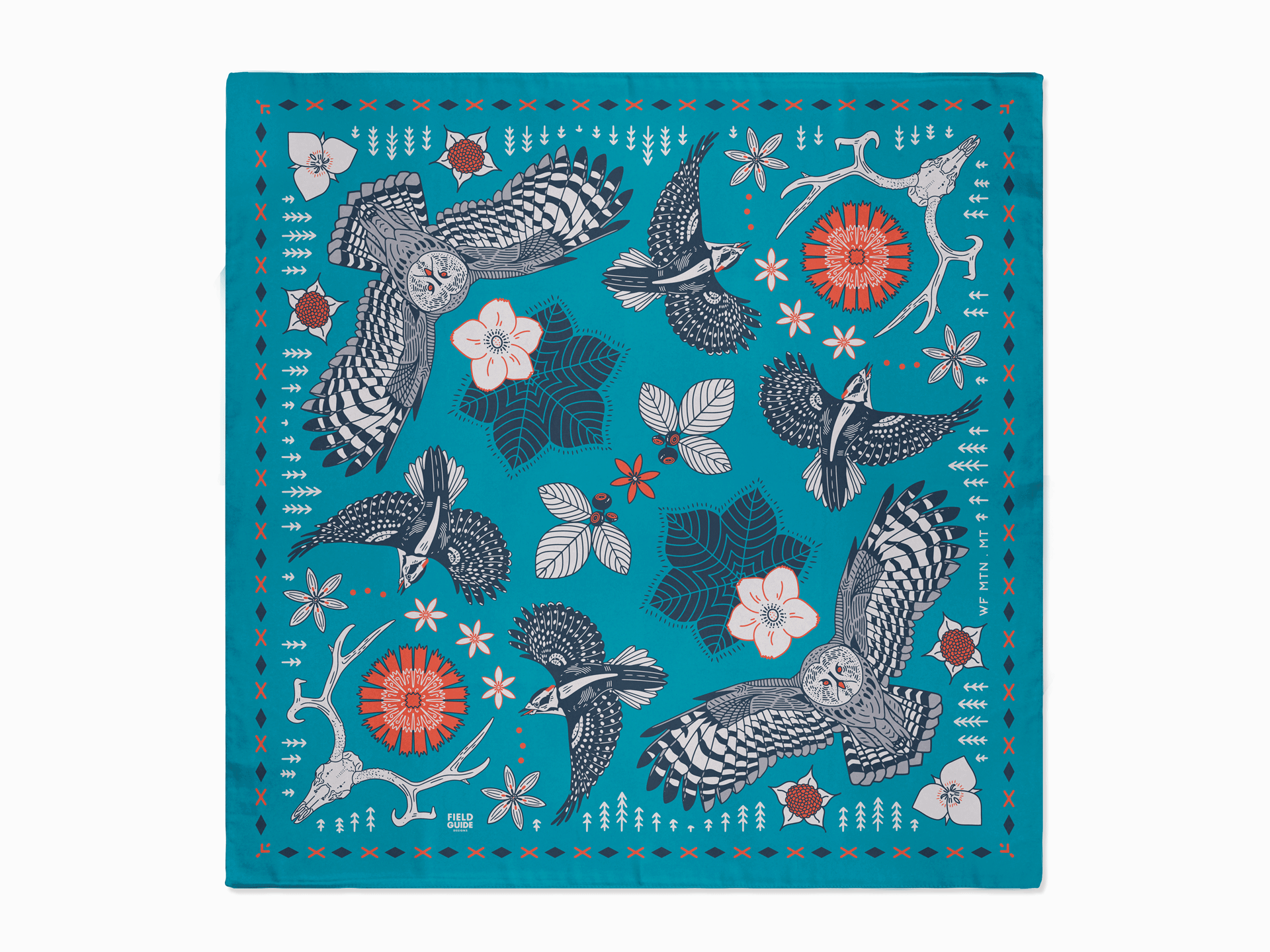 Inspired by the flora and fauna that thrive on the beautiful Whitefish Mountain in the Flathead Valley, this bandana serves as your field guide for wildlife in Montana.